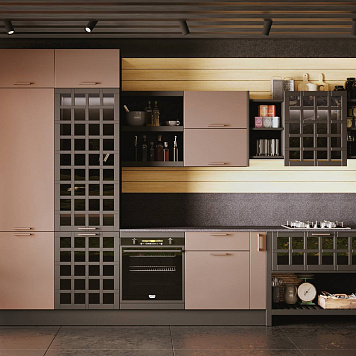 На фасадах мебели отсутствуют лишние детали, ни одного признака современности, вся «начинка» надежно спрятана за лицевыми панелями. Однако простота линий обманчива, ведь основная концепция этой мебели – стремление к совершенству. Это образец тщательно выверенных пропорций и идеальных форм, ей обрадуются ценители сдержанного оформления интерьера, когда каждая деталь находится на своем месте и идеально гармонирует с остальными предметами. Модерн для современной кухни (даже в такой оригинальной трактовке) – один из самых востребованных стилей, актуальный и модный.