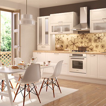 Также для придания особого неповторимого облика мы предлагаем своим клиентам украшать стеновые панели и открытые элементы кухонного гарнитура специальным покрытием - буазери.