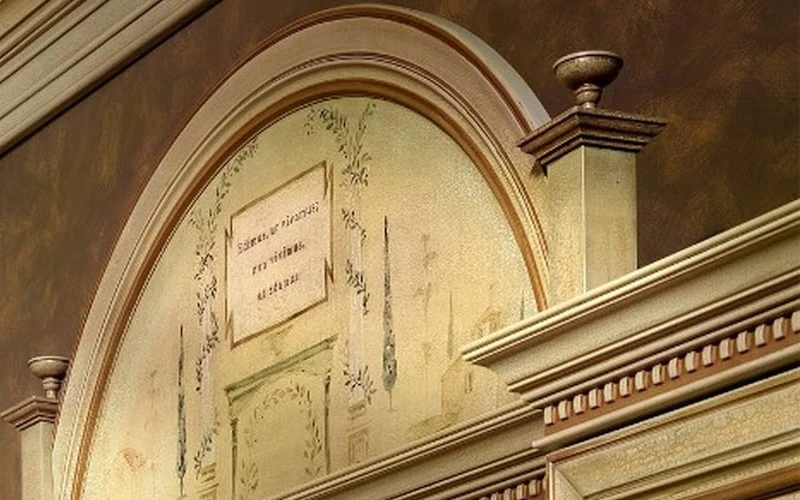 Большое многообразие отделки позволяет создавать уникальные изделия. Работники фабрики создают фасадные изделия, используя технологию Маркетри.